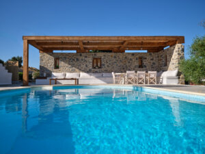 Two distinct guest houses surround the alluring pool area, epitomizing the essence of privacy. Each guest house features a bedroom with a comfortable double bed, a convenient kitchenette, and a well-appointed bathroom. Villa Estellar masterfully melds traditional charm with contemporary allure, creating a sanctuary where relaxation and luxury converge seamlessly.